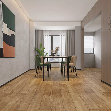 SPC ламинат Brume - это современное напольное покрытие, идеально сочетающее в себе надёжность, эстетику и практичность. Коллекция Fjord воспроизводит утончённую текстуру и естественные оттенки дуба, создавая в интерьере атмосферу спокойствия и скандинавского уюта. Каждая доска размером 1185x181 мм и толщиной 5 мм обладает высокой стабильностью и износостойкостью благодаря инновационной SPC-основе (каменно-полимерный композит), которая не боится перепадов влажности и температуры. Это делает ламинат отличным выбором для любых жилых помещений, включая кухни и прихожие.