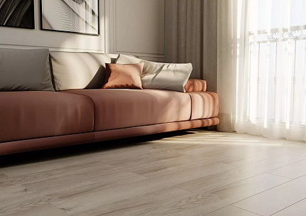 SPC ламинат Brume - это современное напольное покрытие, идеально сочетающее в себе надёжность, эстетику и практичность. Коллекция Fjord воспроизводит утончённую текстуру и естественные оттенки дуба, создавая в интерьере атмосферу спокойствия и скандинавского уюта. Каждая доска размером 1185x181 мм и толщиной 5 мм обладает высокой стабильностью и износостойкостью благодаря инновационной SPC-основе (каменно-полимерный композит), которая не боится перепадов влажности и температуры. Это делает ламинат отличным выбором для любых жилых помещений, включая кухни и прихожие.