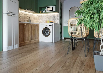SPC ламинат Brume - это современное напольное покрытие, идеально сочетающее в себе надёжность, эстетику и практичность. Коллекция Fjord воспроизводит утончённую текстуру и естественные оттенки дуба, создавая в интерьере атмосферу спокойствия и скандинавского уюта. Каждая доска размером 1185x181 мм и толщиной 5 мм обладает высокой стабильностью и износостойкостью благодаря инновационной SPC-основе (каменно-полимерный композит), которая не боится перепадов влажности и температуры. Это делает ламинат отличным выбором для любых жилых помещений, включая кухни и прихожие.