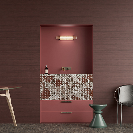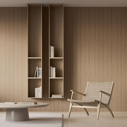 В коллекцию Terra вошли четыре паттерна, вдохновленных лучшими визуальными образами, взятыми у стихии земли: тактильно приятное дерево с живой волокнистой структурой, нагретый солнцем камень с сияющими вкраплениями минералов и обожженная глина, наполненная теплом человеческих рук, придавших ей практичную и устойчивую форму. Ценные породы древесины со своей сдержанной роскошью, эффектный гранит — неизменный спутник аристократичной архитектуры — и монументальная кирпичная стена — основа для экологичного дизайна с уважением к естественной красоте даров природы.