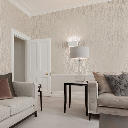 Коллекция обоев включает семь орнаментов и широкий спектр фоновых обоев с текстильным эффектом.