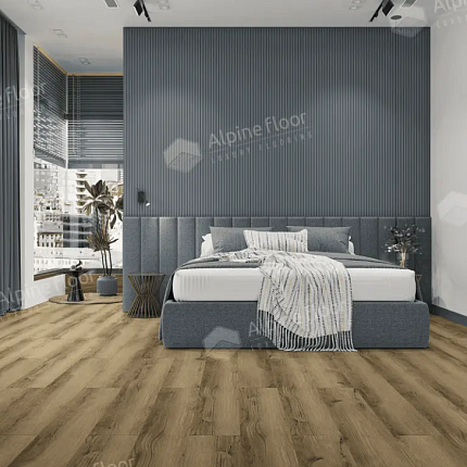 Инженерный кварцвиниловый ламинат Alpine Floor Premium 12 - премиальное влагостойкое напольное покрытие толщиной 12 мм с реалистичным декором под натуральный дуб. Ламинат оснащён защитным слоем 0,5 мм, имеет четкую V-образную фаску с четырёх сторон, брашированную матовую поверхность и встроенную подложку для дополнительной шумо- и теплоизоляции. Модуль широкого формата (228×1524 мм) прочен, устойчив к истиранию (43 класс AC6) и ударам (IC3), подходит для домашнего и коммерческого использования: гостиной, кухни, ванной комнаты и офиса.