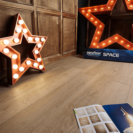 Кварцевый ламинат AquaFloor в коллекции Space - космический уровень SPC - вот что такое коллекция Space. Сочные декоры, с максимально возможным для этого материала, глубоким тиснением в регистр, 4-х сторонняя крашенная в цвет декора срезанная (в отличии от конкурентов) на глубину 2,5 мм фаска, которая позволяет максимально подчеркнуть индивидуальность каждой доски в сочетании с прочным замком системы Push2Lock. Такого набора качеств в SPC нет ни у кого другого.