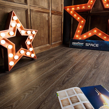 Кварцевый ламинат AquaFloor в коллекции Space - космический уровень SPC - вот что такое коллекция Space. Сочные декоры, с максимально возможным для этого материала, глубоким тиснением в регистр, 4-х сторонняя крашенная в цвет декора срезанная (в отличии от конкурентов) на глубину 2,5 мм фаска, которая позволяет максимально подчеркнуть индивидуальность каждой доски в сочетании с прочным замком системы Push2Lock. Такого набора качеств в SPC нет ни у кого другого.