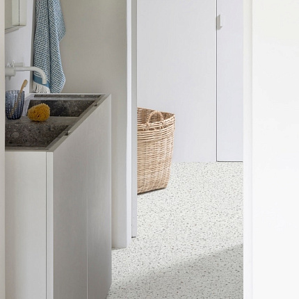 - 100% водостойкость позволяет использовать виниловый пол как в ванной комнате, так и на кухне.