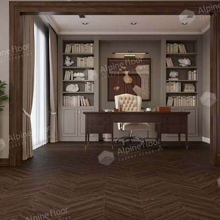 Ламинат Alpine Floor Chevron Art - стильное напольное покрытие, выполненное в формате французской ёлки и отличающееся ультраматовой фактурой. Толщина панели 12 мм и 34 класс износостойкости гарантируют долговечность при интенсивной эксплуатации как в жилых, так и коммерческих интерьерах. Брашированная поверхность с четырёхсторонней фаской имитирует натуральный паркет, а система замков 5G с восковой пропиткой обеспечивает простую укладку, увеличивает влагостойкость, предотвращает набухание и появление скрипов.