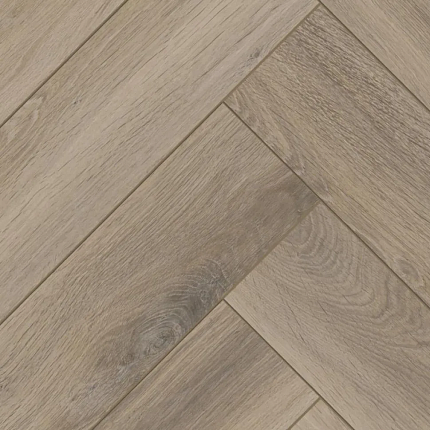 Отличительной особенностью ламината Kronotex Herringbone (Кронотекс Херрингбон) является формат “елочка”, который придает полу особый шарм и элегантность. Фаски по периметру добавляют выразительности и объема. Поверхность ламината точно воспроизводит структуру дуба и выполнена в нежных бежевых тонах, что создает приятный и спокойный интерьер.