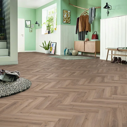 Ламинат Kronotex Herringbone - стильное и высококачественное напольное покрытие, которое станет украшением любого интерьера. Толщина ламината 8 мм и класс износостойкости 32 делают его идеальным решением для жилых и коммерческих помещений со средней проходимостью.