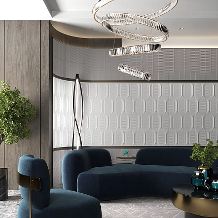 Панель для стен Decoplume - прекрасное воплощение изящества, плавности и четкости линий. Применима для формирования большого числа разнообразных комбинаций с другими элементами коллекции.