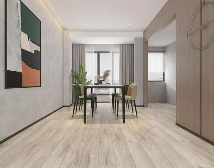 SPC ламинат Brume - это современное напольное покрытие, идеально сочетающее в себе надёжность, эстетику и практичность. Коллекция Fjord воспроизводит утончённую текстуру и естественные оттенки дуба, создавая в интерьере атмосферу спокойствия и скандинавского уюта. Каждая доска размером 1185x181 мм и толщиной 5 мм обладает высокой стабильностью и износостойкостью благодаря инновационной SPC-основе (каменно-полимерный композит), которая не боится перепадов влажности и температуры. Это делает ламинат отличным выбором для любых жилых помещений, включая кухни и прихожие.