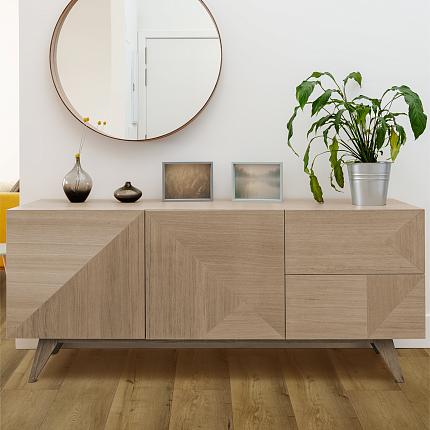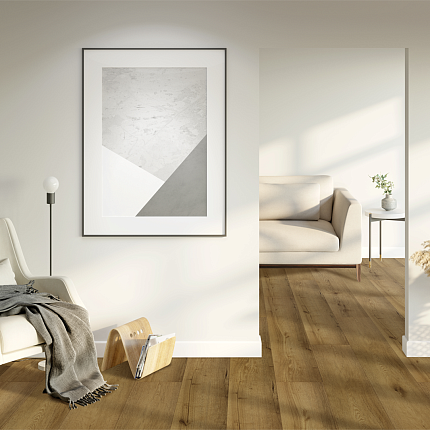 Виниловая плитка Куберпол - имеет декор тёплого дуба натурального тона с благородным коньячным оттенком, с насыщенной текстурой и заметными древесными акцентами. Живой рисунок с древесными сучками придаёт покрытию характер и глубину. Слой матового лака на поверхности материала подчёркивает природную эстетику дерева, тактильно приятен, и, помимо эстетического эффекта, лак выполняет роль дополнительного защитного слоя от загрязнений и микро-царапин.