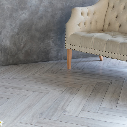 Виниловый ламинат AquaFloor в коллекции Parquet Plus - коллекция премиального кварц-винилового паркета, стилизованного под "английскую" елочку. Специально для этой коллекции и системы замка Push2Lock мы создали инновационное жесткое основание Rigid Vinyl (смесь SPC и WPC), что позволяет собирать этот материал 10 разными способами.