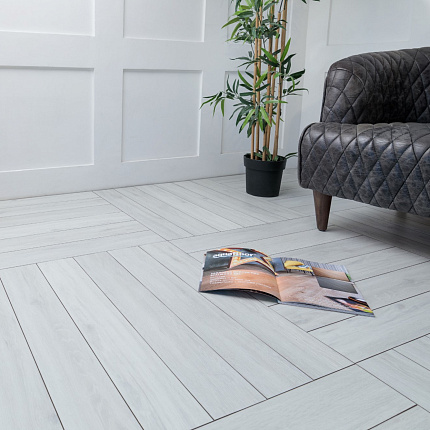 Виниловый ламинат AquaFloor в коллекции Parquet Plus - коллекция премиального кварц-винилового паркета, стилизованного под "английскую" елочку. Специально для этой коллекции и системы замка Push2Lock мы создали инновационное жесткое основание Rigid Vinyl (смесь SPC и WPC), что позволяет собирать этот материал 10 разными способами.